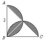 如图所示,三角形ABC是直角三角形,AC长4厘米,BC长2厘米。以AC、BC为直径画半圆,两个半圆的交点在AB边上。求图中阴影部分的面积。(输入小数)
