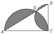 如图所示,△ABC是等腰直角三角形,求阴影部分的面积(单位:厘米)。